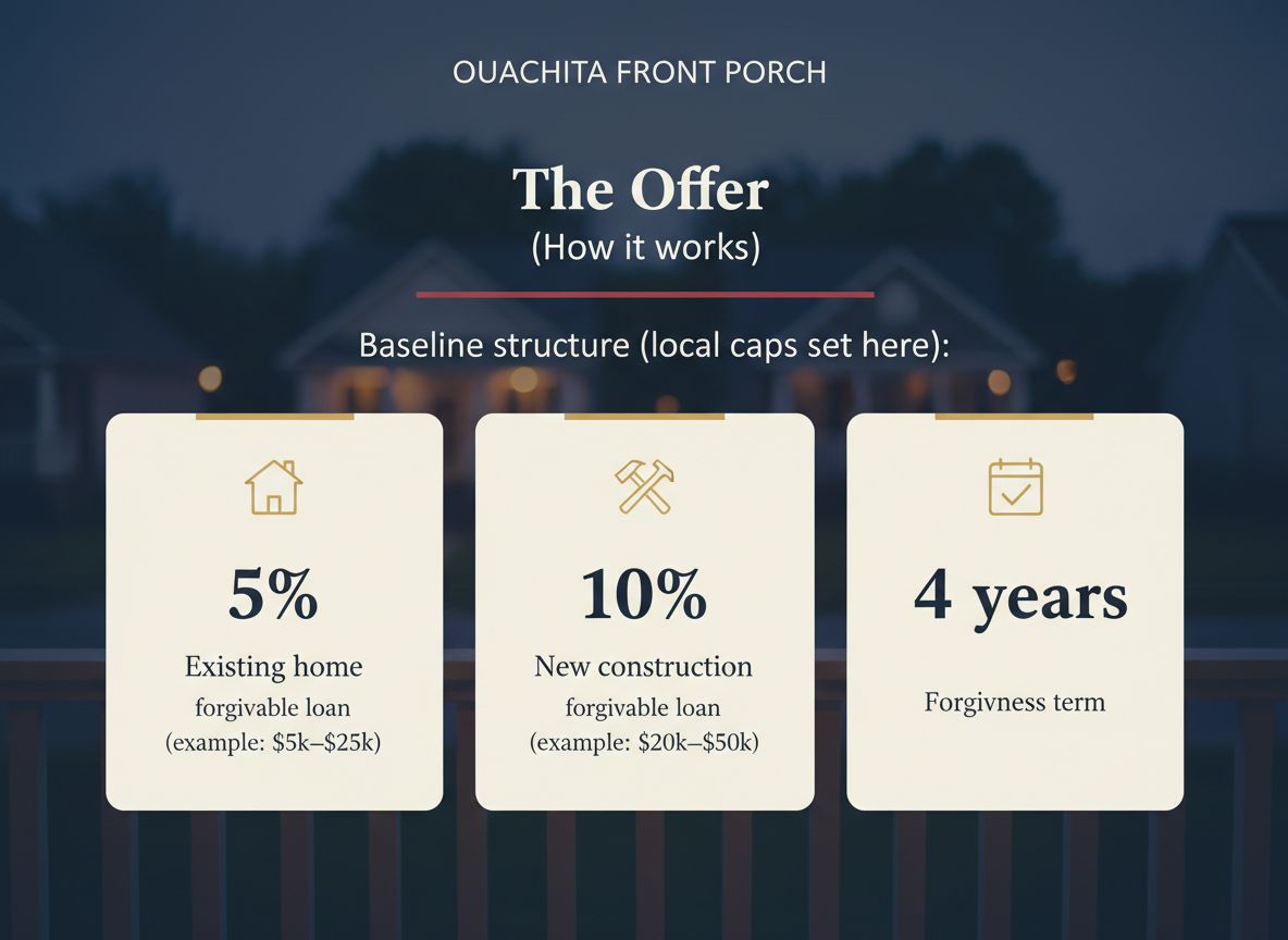 Ouachita Front Porch is designed to be simple to understand and easy to run — so it can scale with more participating employers and local banks.